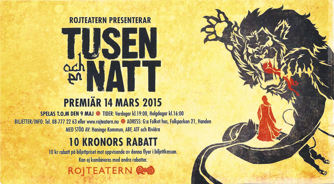 RoJteatern hälsar er varmt välkomna att resa bortom tid och rum till en förtrollande värld med vår magiska uppsättning av Tusen och en natt.